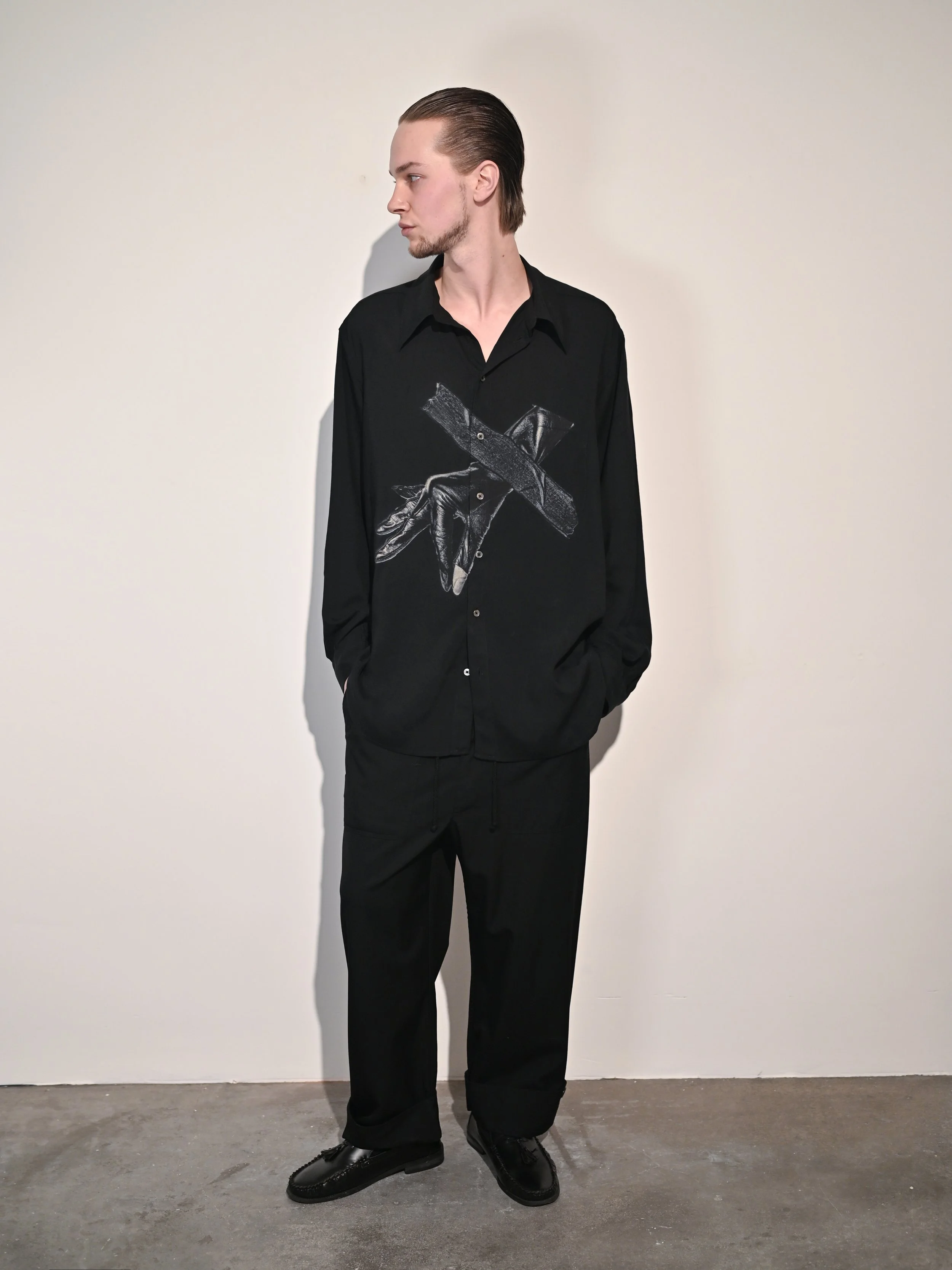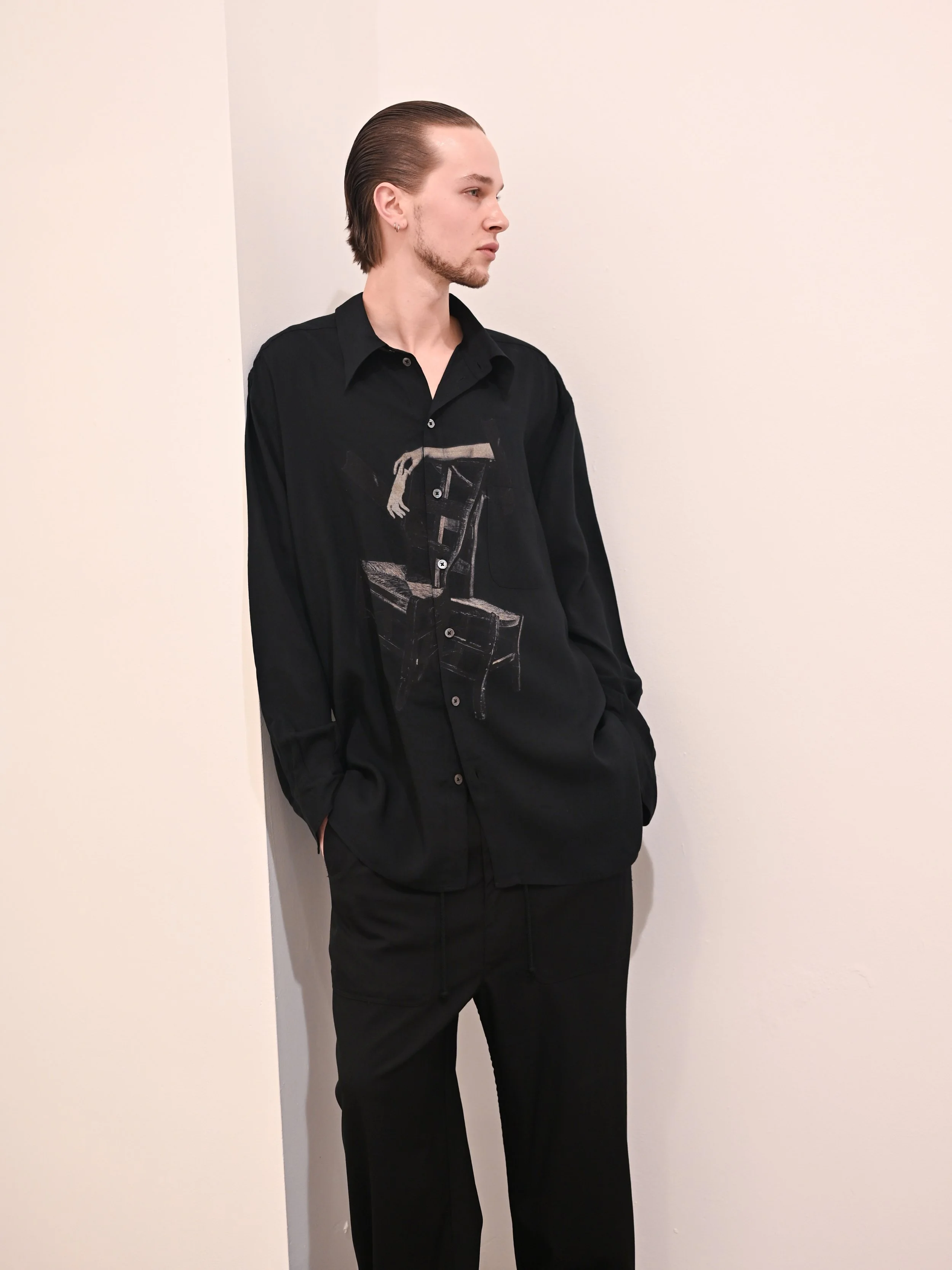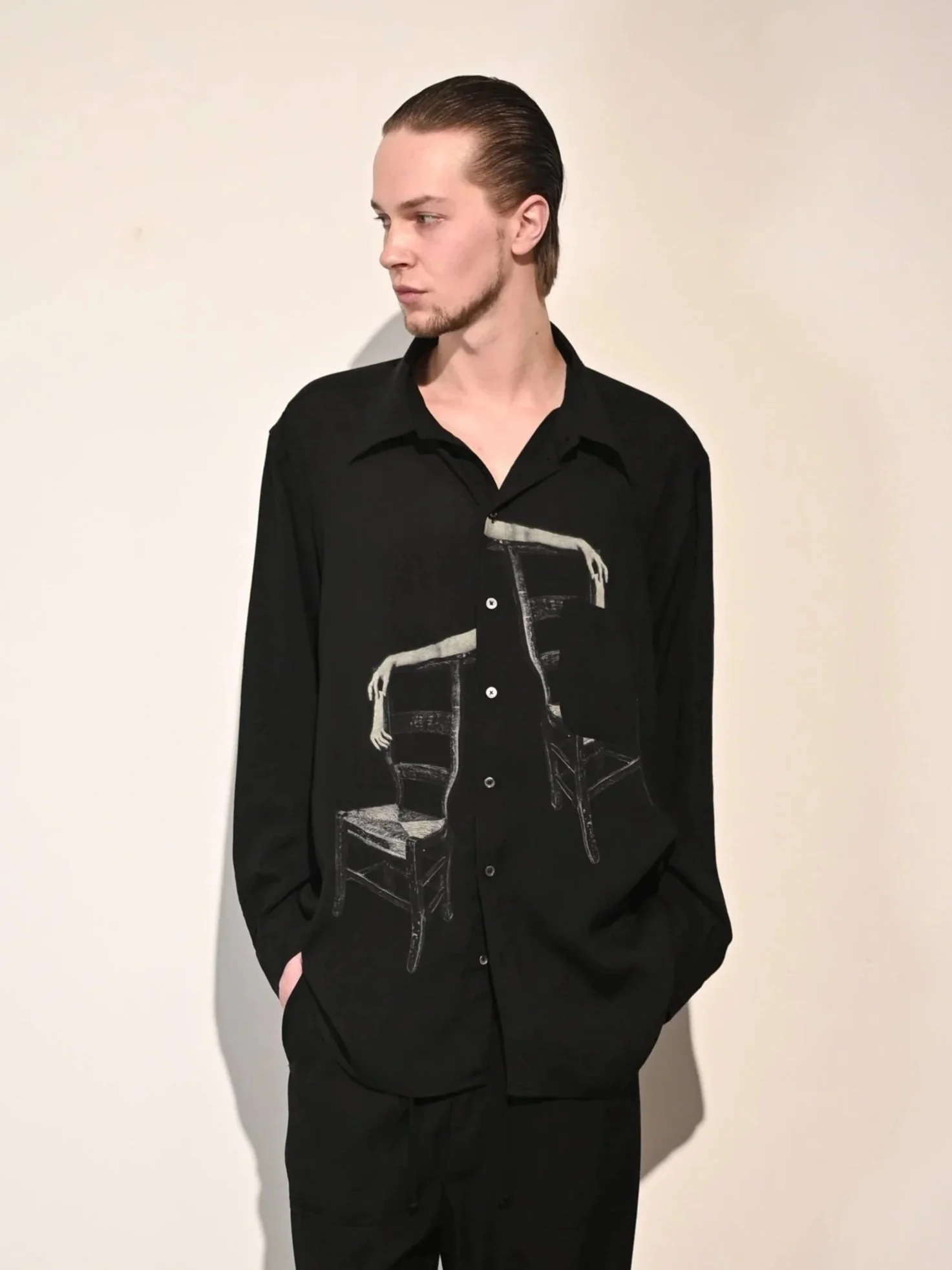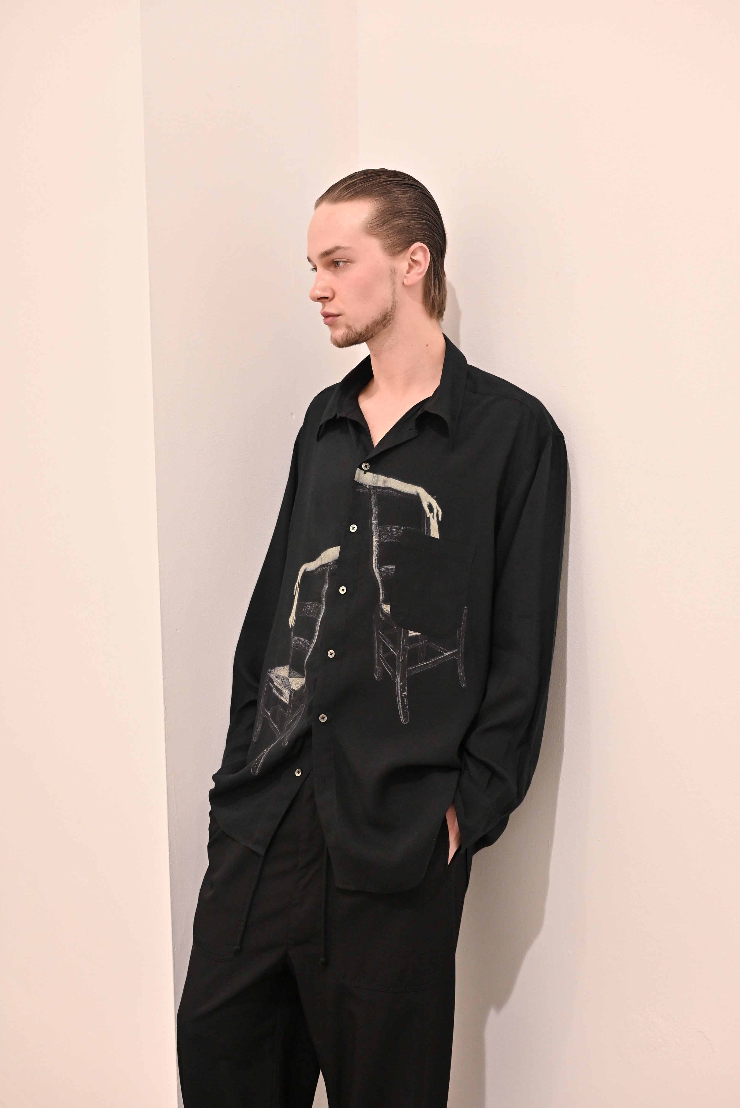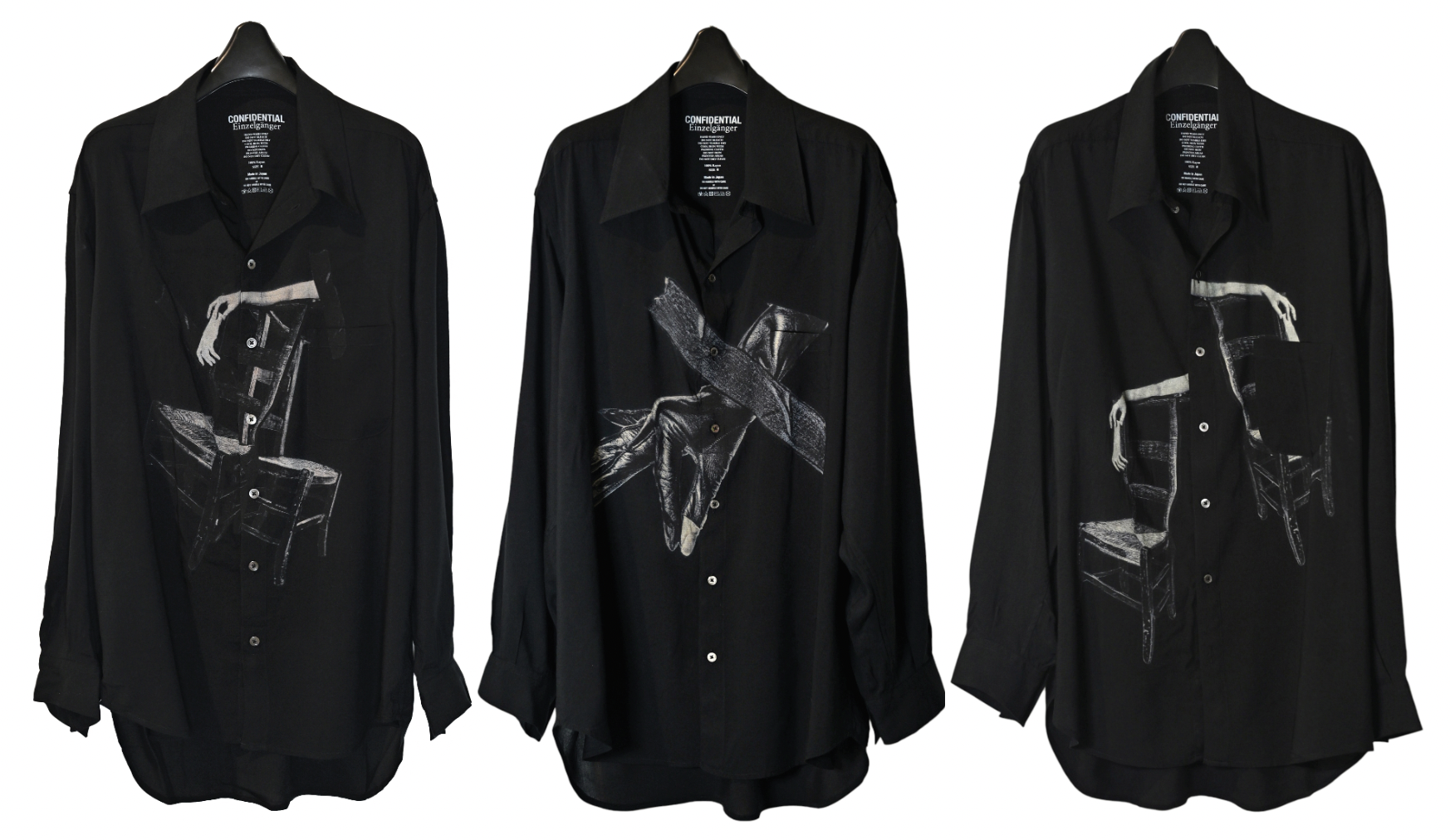 All pattern-making, fabric prototyping, and print design are independently developed by Kié. The complete production process—including the execution of highly detailed printing techniques—is carried out and finished by specialized professionals at production sites in Japan. Through this process, two-dimensional prints are transformed into sculptural, wearable three-dimensional shirt forms. By positioning the garment itself as a sculptural medium, the language of fine art converges with fashion.